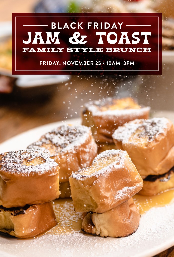 Refreshed content for the Rustic’s Jam & Toast Brunch beginning with Black Friday.